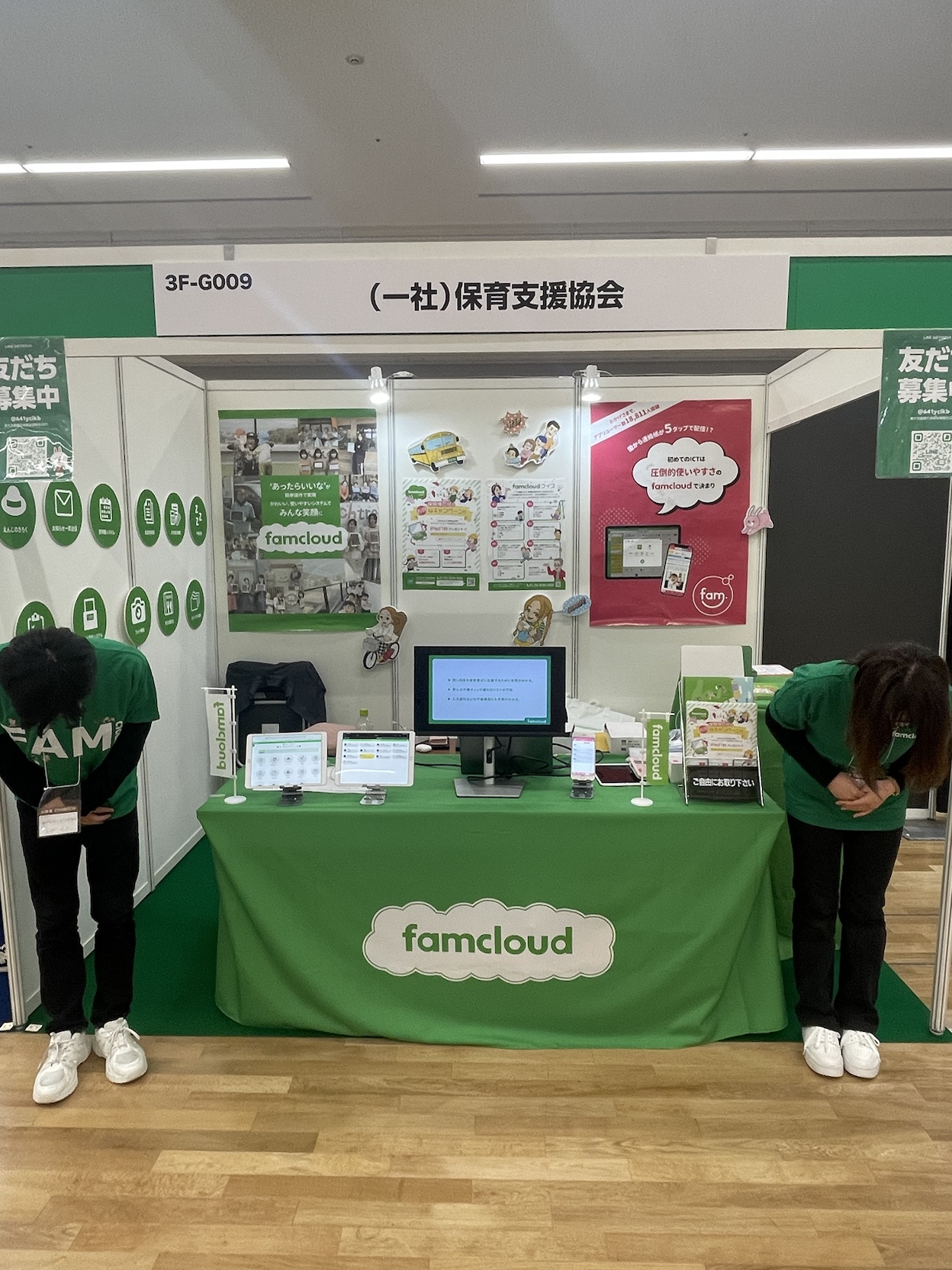先日、令和5年11月21日(火)~22日(水)計2日間、東京都立産業貿易センター 浜松町館にて行われた『保育博2023― 保育・教育ビジネス&サービスフェア―』にfamcloudが出展いたしました。