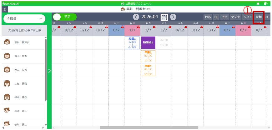 ※労働時間打刻の設定を途中で変更した場合、常勤換算は過去データも含め変更後の内容で計算されます。