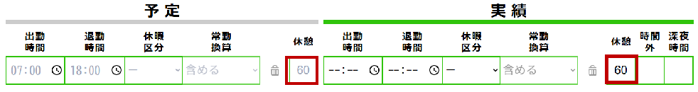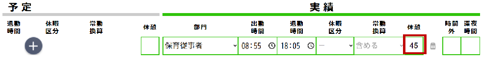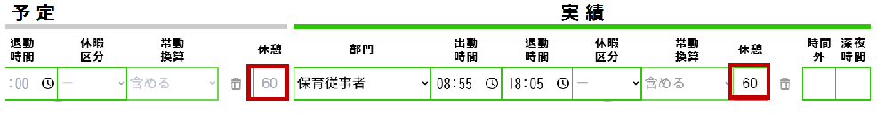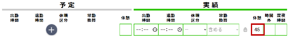 予定に休憩が登録されている場合、予定の休憩が登録されます。